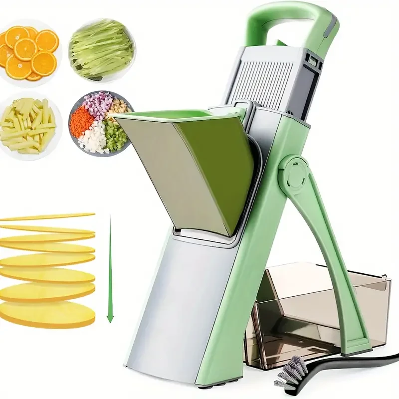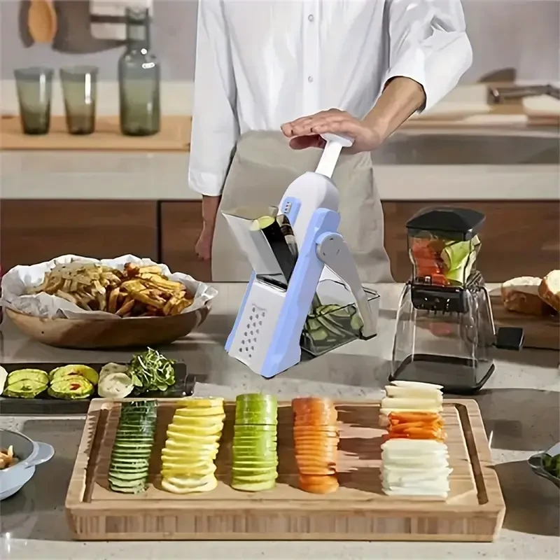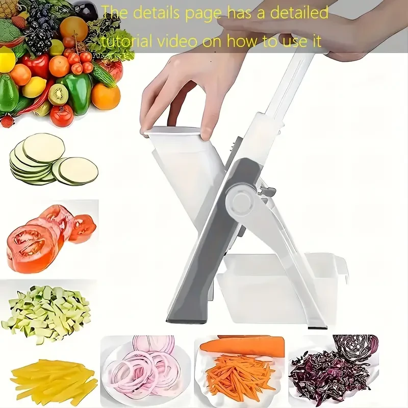 - 【SAFE MANDOLINE SLICER】: Our 5 in 1 mandoline slicer lets you slice, strip, dice, and julienne your vegetables safely in seconds,30+ different cuts do not need to change blades, this kitchen Slicer artifact is perfect for potatoes, cucumbers, carrots, if you won't slice off a chunk of flesh from your finger(s) on the exposed blade, this will be the right choice for you.